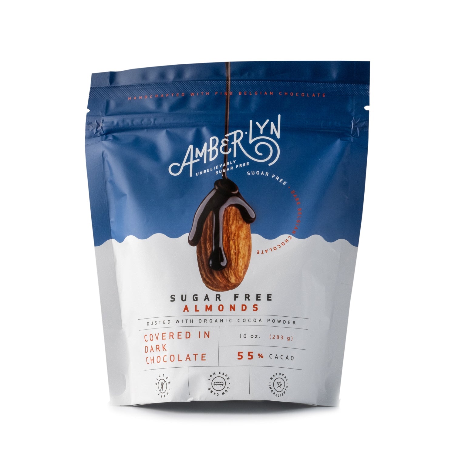 Large, roasted to perfection California Almonds, generously covered in smooth, rich, Dark Belgian Sugar Free Chocolate. Amberlyn Dark Chocolate Sugar Free Almonds is a great healthy lifestyle snack for chocolate lovers. Sugar free, gluten free, diabetic friendly and dangerously delicious.
