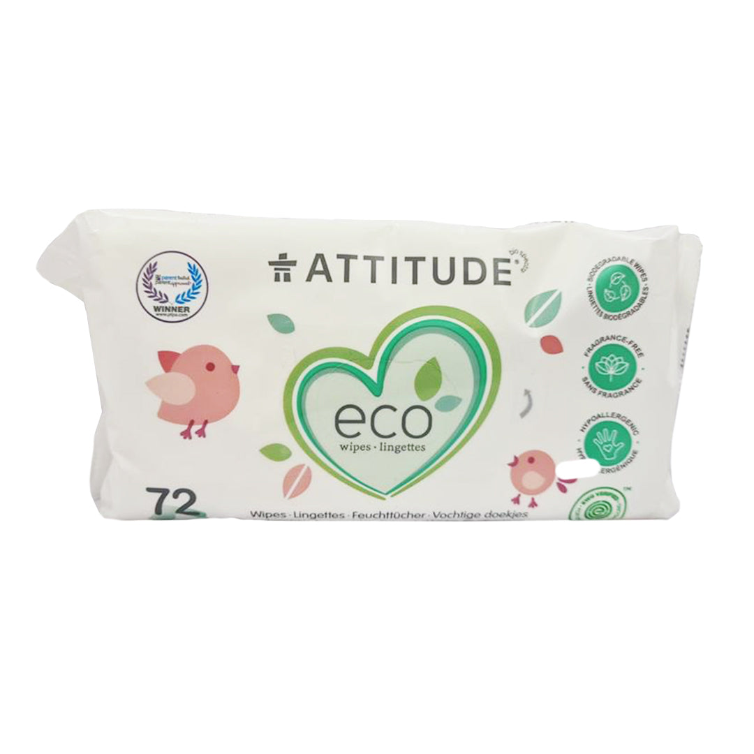 Attitude 100% Biodegradable Baby Wipes Fragrance-free 72 wipes