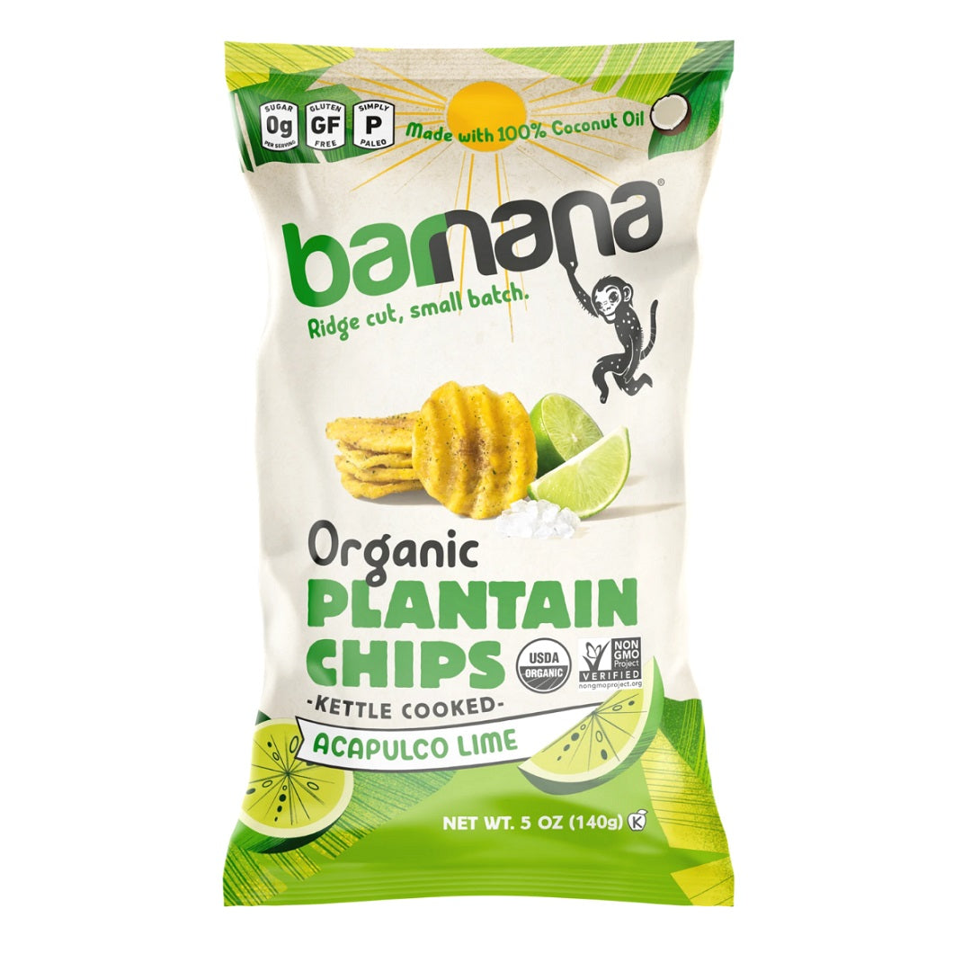 Barnana Organic Ridged Plantain Chips Acapulco Lime are loaded with tangy lime and a pinch of sea salt to spice up these chips. Eat these straight out of the bag or dip in salsa or guacamole.