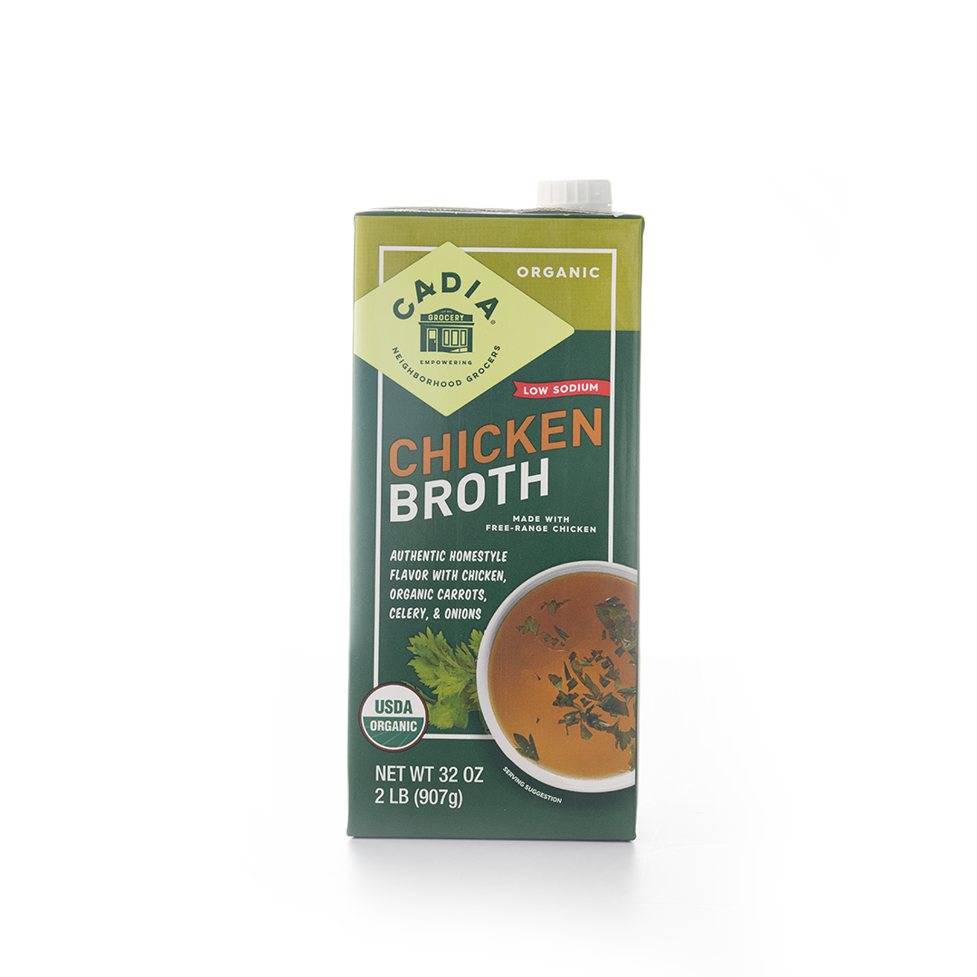 Cadia Organic Free-Range Chicken Broth is a delicious combination of organic free range chicken, sweet organic carrots, celery, and onions made for a classic homemade taste. Using this broth is an easy way to add an accent of flavor to your favorite dishes. It's great as a starter for soups or in place of water in preparing rice, pasta, or potatoes.