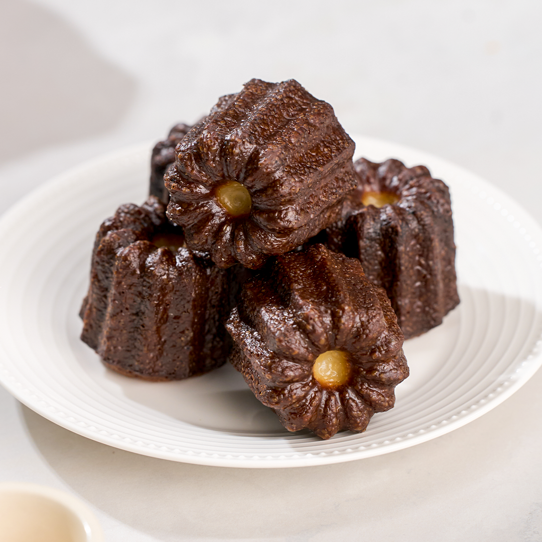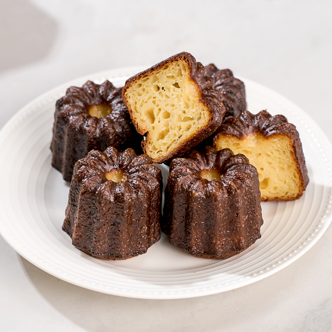 This classic French pastry originated in Bordeaux. Its dark, caramelized coating exquisitely complements the smooth and sweet filling of natural vanilla. Expect a bittersweet crunch followed by a tender and flavorful center. Sold in sets of 5.