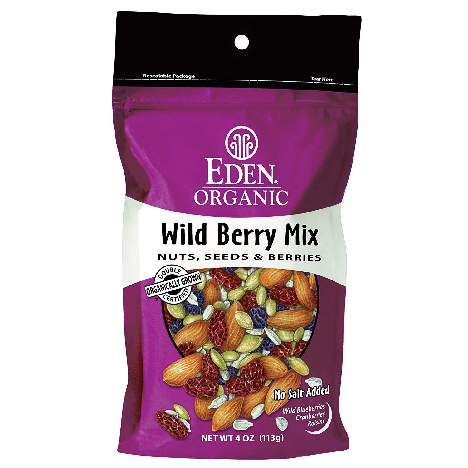 A delicious no salt added snack composed of roasted organic almonds, organic pumpkin seeds, and raw organic sunflower seeds mixed with organic raisins, dried wild blueberries, and dried cranberries. Rich and nutty with delightful tastes of sweet and mildly tangy fruit that's a good source of magnesium, healthy fiber and protein. Include in making desserts, pastries, breads, granola, muesli, hot cereal or grab by the handful.