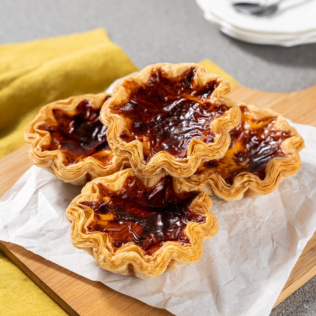 In a set of 4, delight in our vegetarian Egg Tarts, where creamy custard meets a flaky puff pastry. Infused with hints of cinnamon and lemon zest, this dessert is naturally sweetened to enhance its delicate flavors without any added sugar.
