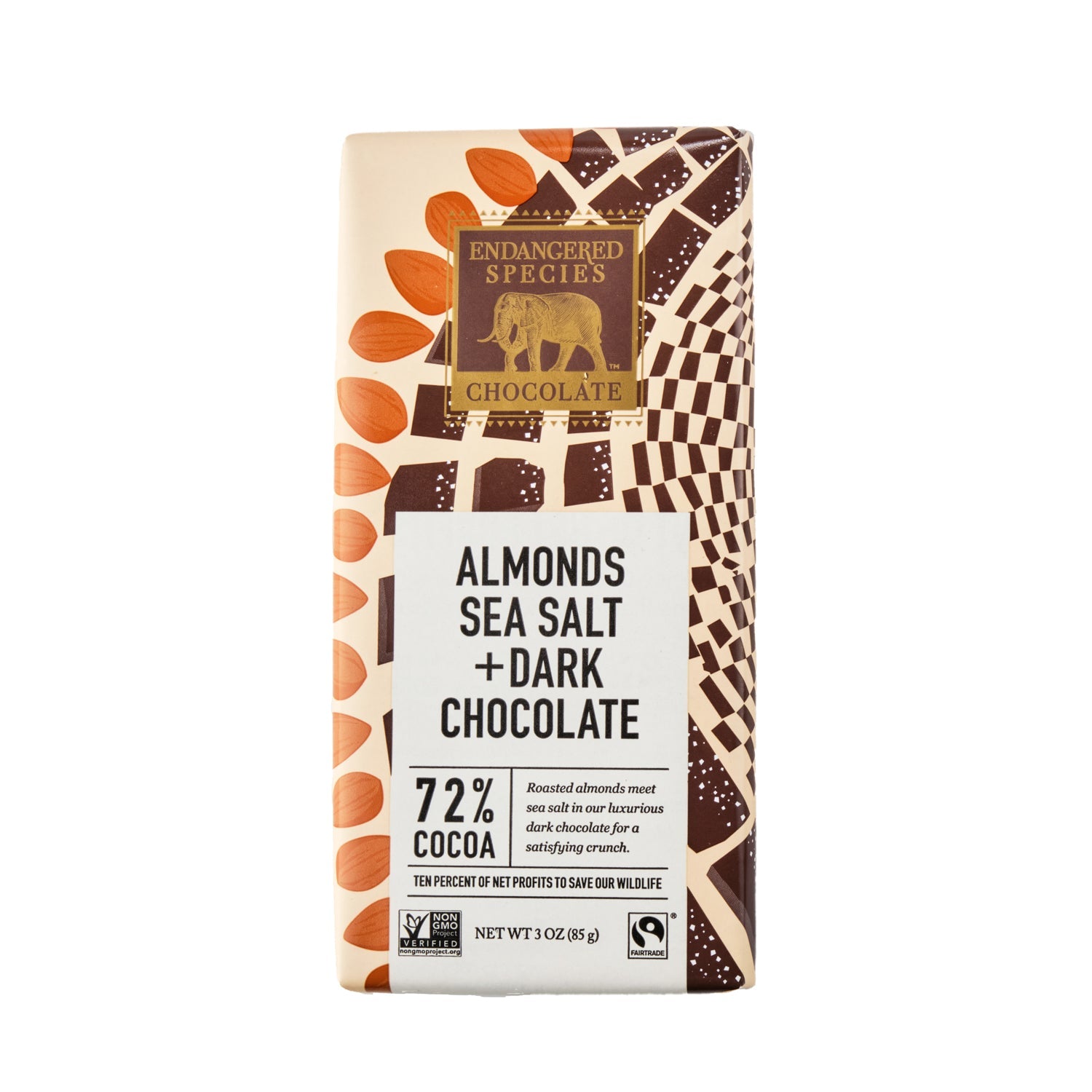 Endangered Species Chocolate Almonds Sea Salt + Dark Chocolate 72% Cocoa 85g