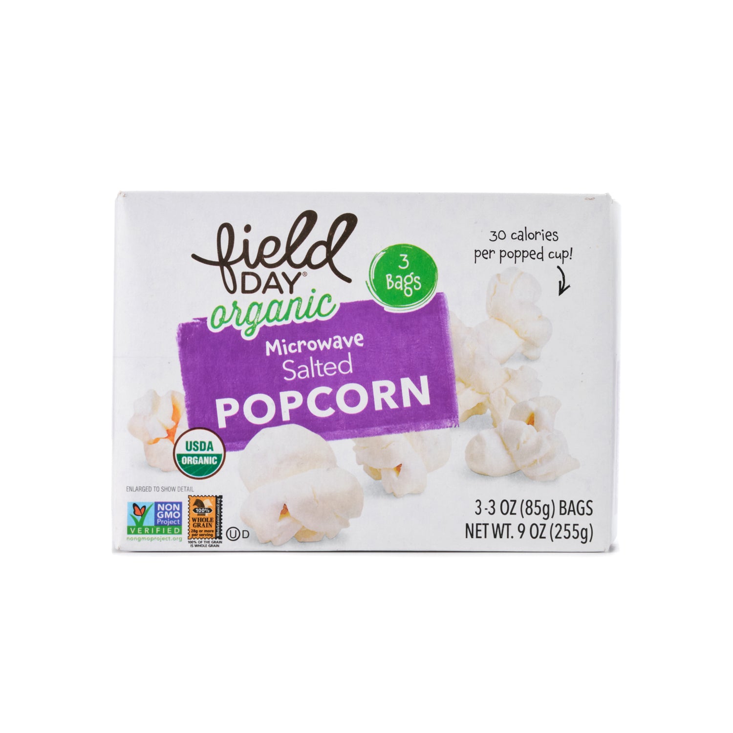 Field Day Organic Microwavable Salted Popcorn 255g (3 x 85g mini bags)