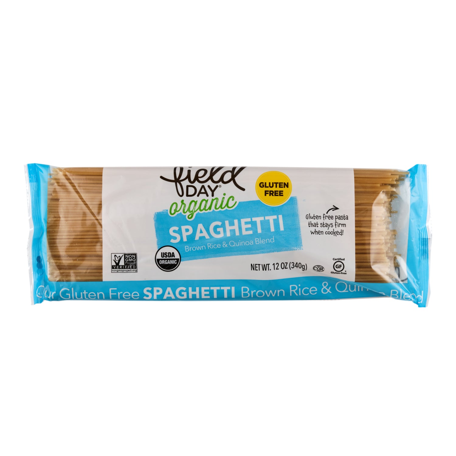 Field Day Organic Gluten-Free Quinoa Spaghetti has the traditional taste and texture you love, now gluten-free! It is made from a specially crafted quinoa and brown rice blend which helps the pasta maintain shape and stay firm while cooking, making it the ideal base for your favorite recipes!