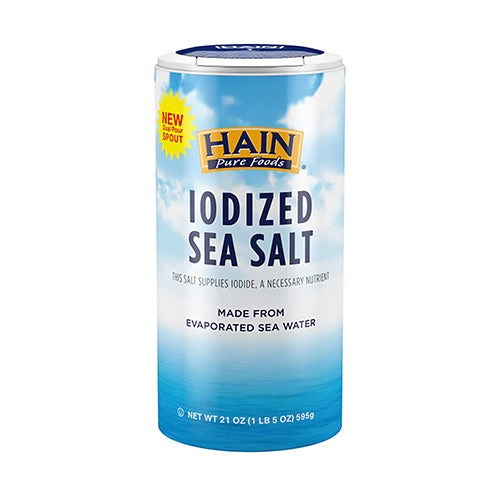 Enhance the flavor of your favorite recipes with Hain Pure foods iodized sea salt. Sourced and produced from evaporated Sea water, this sea salt is the perfect addition to a variety of meat, poultry, seafood and vegetable dishes. Hain Pure foods iodized sea salt comes packaged in a convenient canister with an easy-to-pour spout and shaker.
