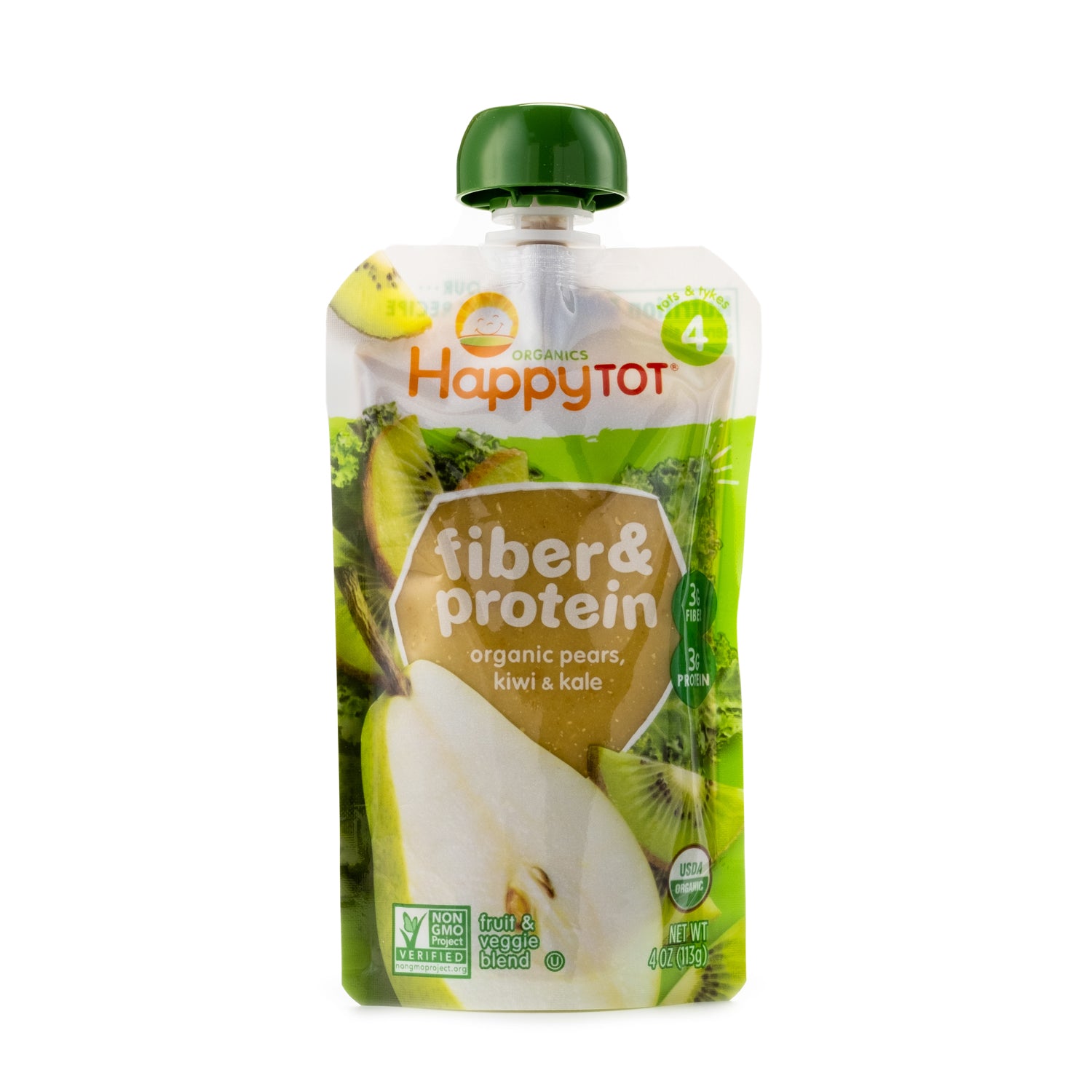 Happy Tot Fiber & Protein Organic Pears, Kiwi & Kale Stage 4 113g