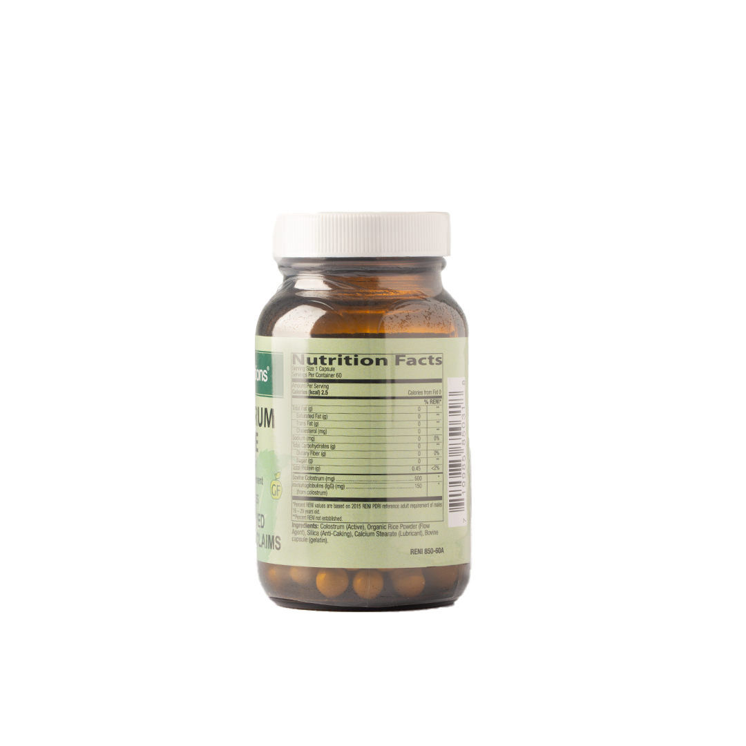 Colostrum (Active), Organic Rice Powder (Flow Agent), Silica (Anti-Caking), Calcium Stearate (Lubricant), Bovine capsule (gelatin).