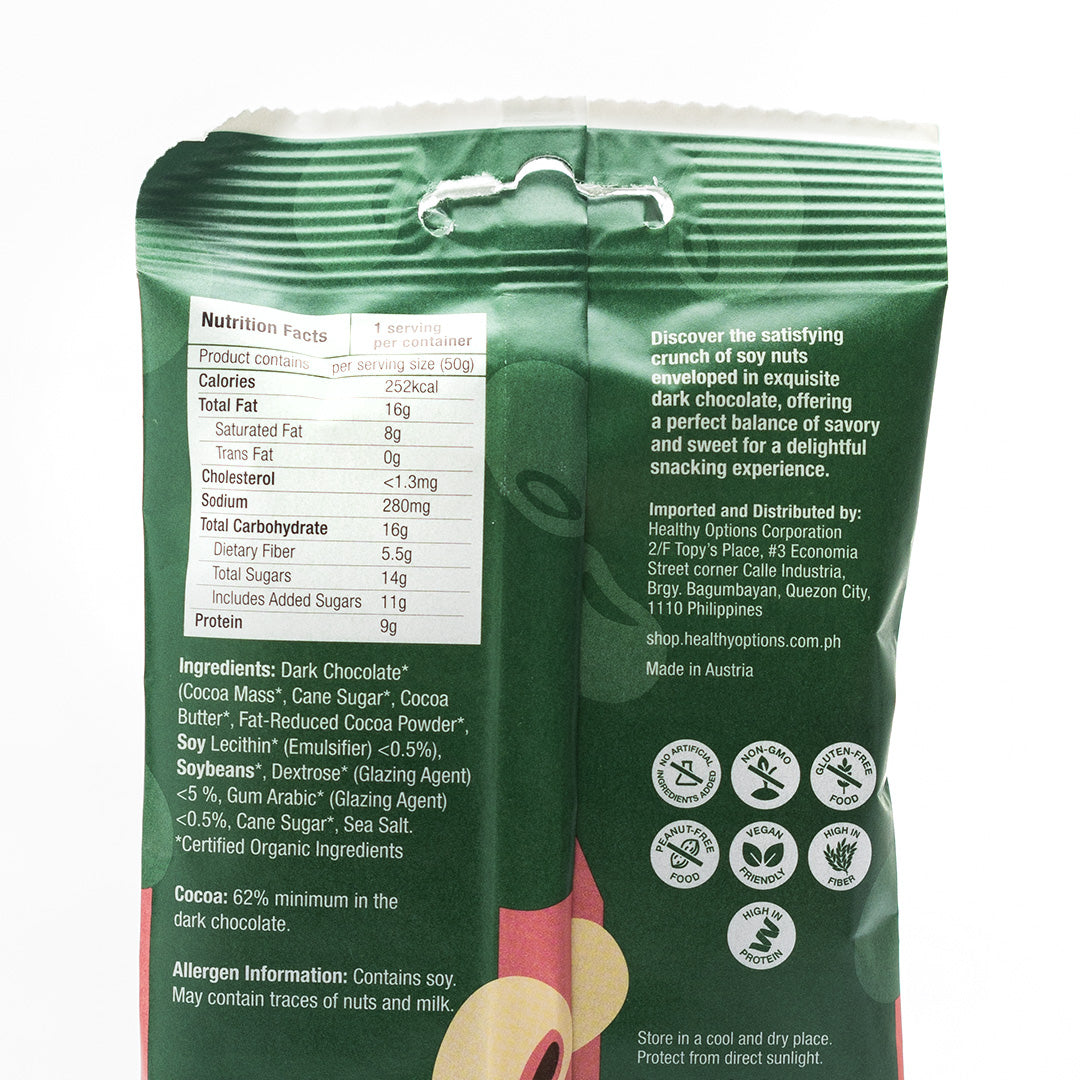 Healthy Options Organic Soybeans in Dark Chocolate 50g