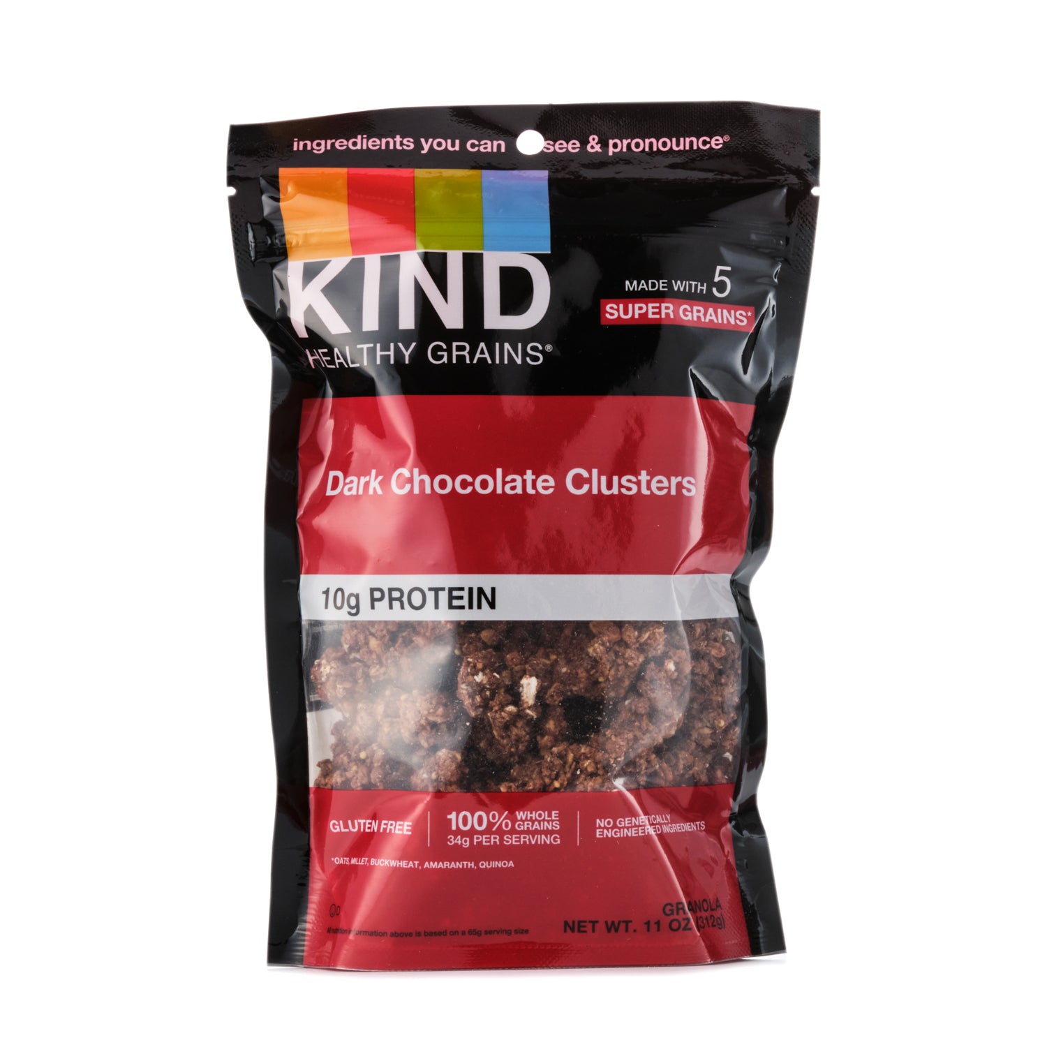 Kind Dark Chocolate Whole Grain Clusters are dusted in cocoa, then mixed with dark chocolate chunks, a sprinkle of sea salt, and a few more delicio...