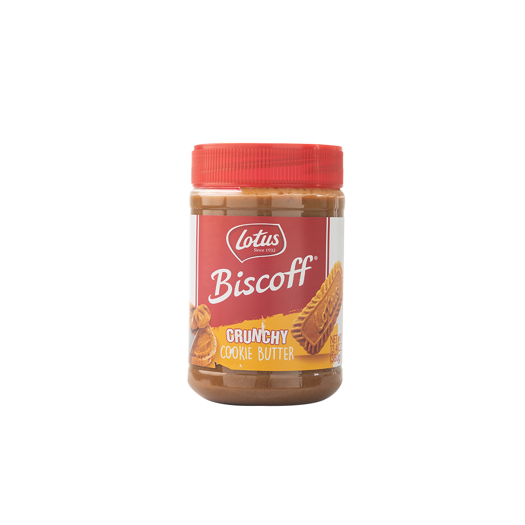 Biscoff Crunchy Cookie Butter Spread has an irresistible taste with a crunchy, easy to spread texture. Pieces of Lotus Biscoff Cookies serve as the "crunch" in this crunchy cookie spread. This sweet and crunchy spread is a great alternative to nut butters and chocolate spreads. Perfect as a dip, topping, spread or with a spoon straight out of the jar.
