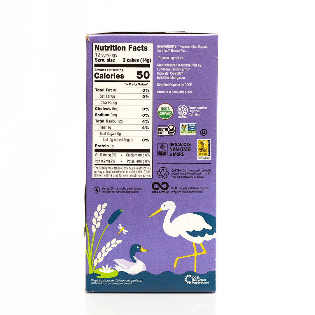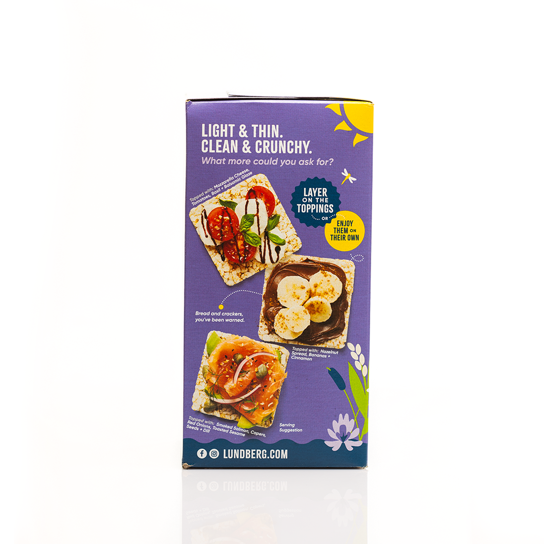 Lundberg Organic Thin Stackers Brown Rice are light, crunchy, flavorful, and thin. Lightly salted, these are great alone as a whole grain snack or paired with your favorite topping.