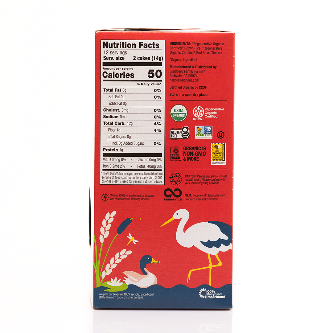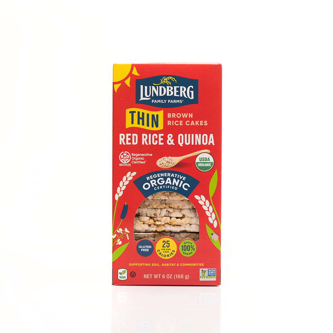 Lundberg Organic Thin Stackers Brown Rice are light, crunchy, flavorful, and thin. Made with a hearty dose of brown rice, red rice, and quinoa, these are great alone as a whole grain snack or paired with your favorite topping.