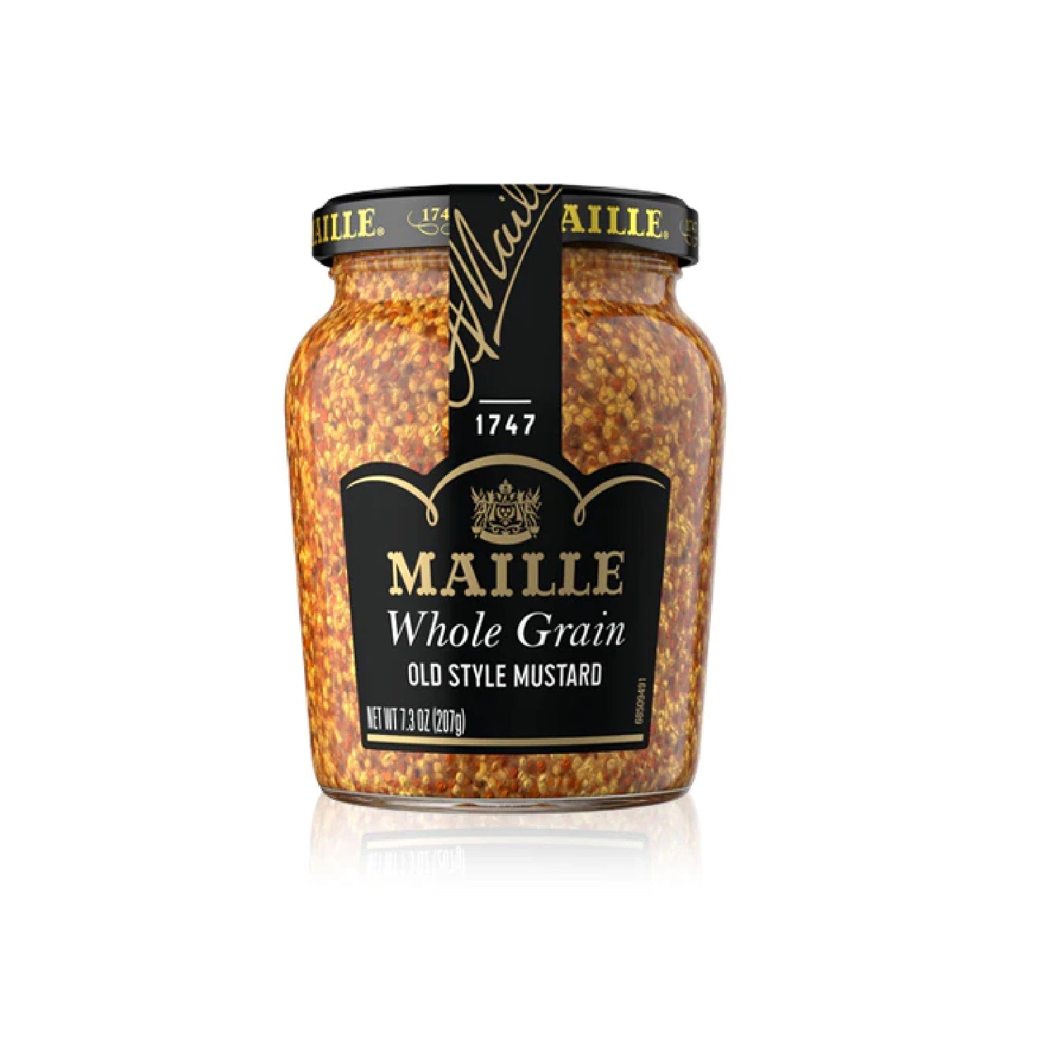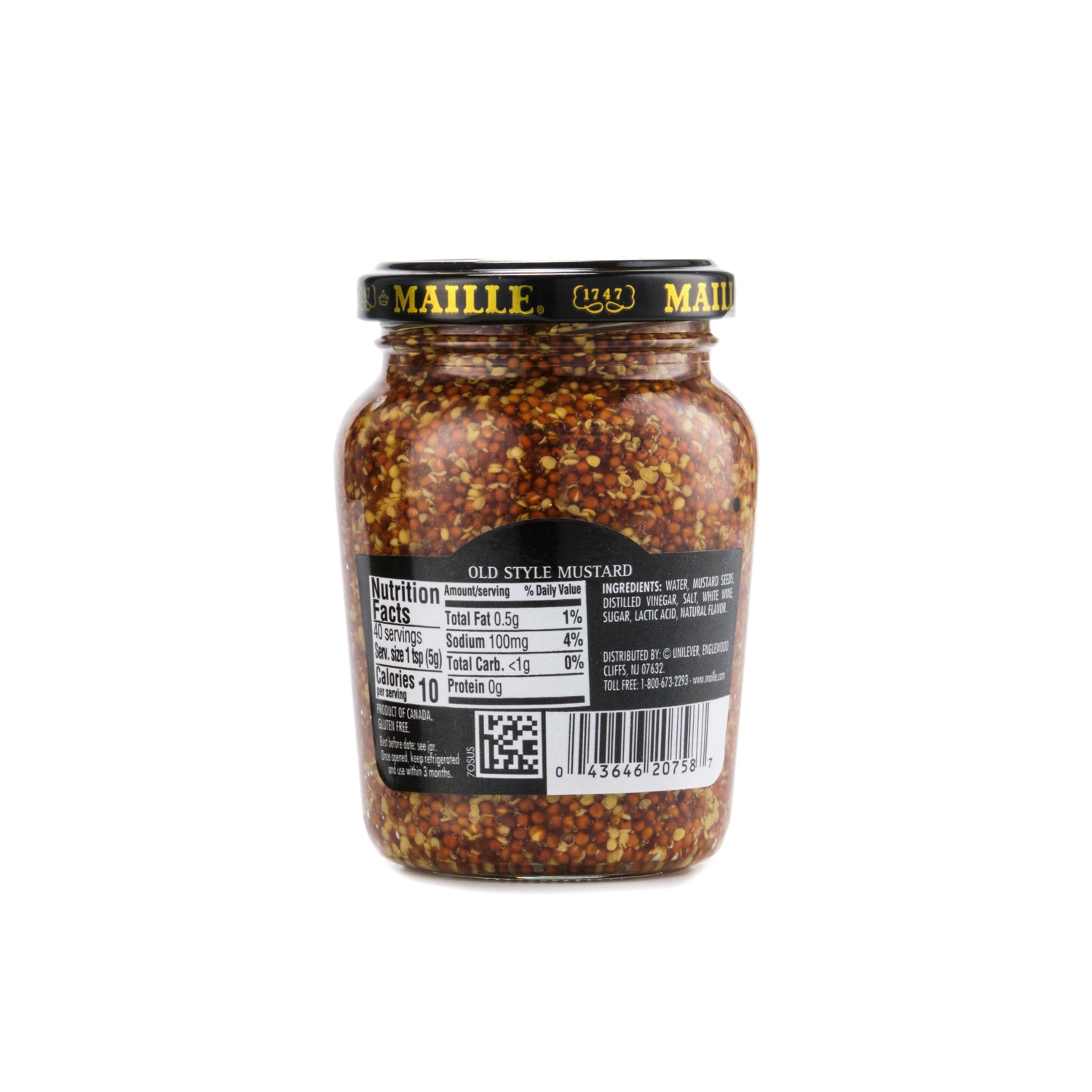 Maille Old Style Mustard is made with crisp whole seeds that gives its grainy texture. It packs a powerful punch with intense flavors, perfect for adding to sauces, vinaigrettes, mashed potatoes, or paired with cheese, seafood, vegetables, and grilled meats.