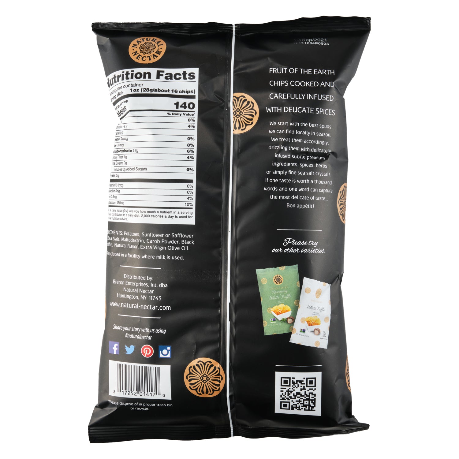 Potatoes, Sunflower or Safflower Oil, Sea Salt, Maltodextrin, Carob Powder, Black Truffle, Natural Flavor, Extra Virgin Olive Oil.