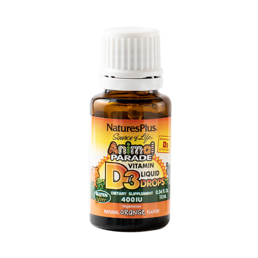 Natures Plus Animal Parade Vitamin D3 Liquid Drops 400IU per 2 drops 10ml Natural Orange Flavor