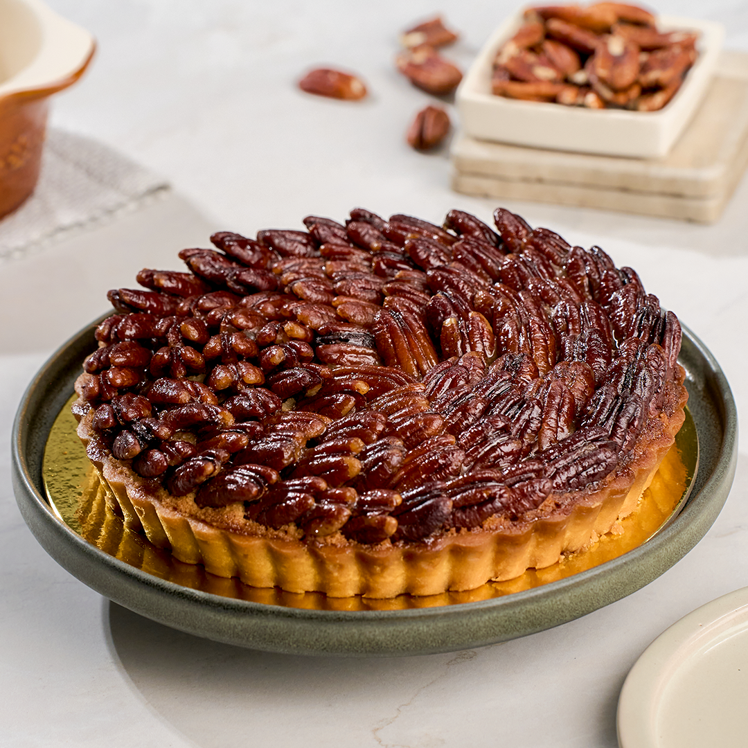 This delightful creation features a rich, buttery crust filled with almond cream and crowned with a generous layer of pecans. You're sure to enjoy the delightful crunch, melting creaminess, and luscious maple-vanilla notes of caramelized pecans in every slice.